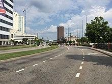 The 1.09 miles (1.75 km) downtown Norfolk route uses Waterside Drive and Boush Street between the Berkley Bridge (SR 337/I-264/US 460 Alt.) and Brambleton Avenue (SR 337/US 58). The route runs by major attractions such as Waterside Marketplace, Town Point Park, and Nauticus. Waterside Drive was built in order to revive the Downtown area. According to the traffic counts, southbound traffic uses Duke Street from Brambleton Avenue south to Tazewell Street, but the one-way pair no longer exists, as Norfolk has made Boush Street two-way.[4][5]