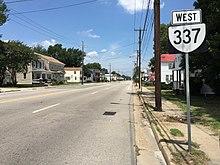 Also in 1953, the new US 58 bypass of downtown Suffolk (now US 58 Bus.) was completed. US 58 was rerouted onto the bypass, and SR 337 was extended west from Main Street in downtown Suffolk (where US 58 had previously turned) along Washington Street to the west end of the bypass, where it continues to end today.[18]