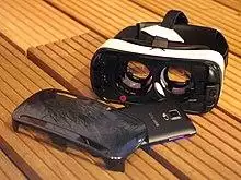 In 2013, Valve discovered and freely shared the breakthrough of low-persistence displays which make lag-free and smear-free display of VR content possible.[38] This was adopted by Oculus and was used in all their future headsets. In early 2014, Valve showed off their SteamSight prototype, the precursor to both consumer headsets released in 2016. It shared major features with the consumer headsets including separate 1K displays per eye, low persistence, positional tracking over a large area, and fresnel lenses.[39][40] HTC and Valve announced the virtual reality headset HTC Vive and controllers in 2015. The set included tracking technology called Lighthouse, which utilized wall-mounted "base stations" for positional tracking using infrared light.[41][42][43]