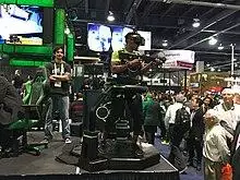 In 1991, Sega announced the Sega VR headset for arcade games and the Mega Drive console. It used LCD screens in the visor, stereo headphones, and inertial sensors that allowed the system to track and react to the movements of the user's head.[18] In the same year, Virtuality launched and went on to become the first mass-produced, networked, multiplayer VR entertainment system that was released in many countries, including a dedicated VR arcade at Embarcadero Center. Costing up to $73,000 per multi-pod Virtuality system, they featured headsets and exoskeleton gloves that gave one of the first "immersive" VR experiences.[19]
