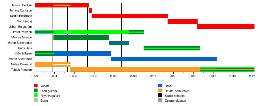 | Past members | Martin Eklöv Martin Pedersen Niklas Dewerud Dennis Röndum Marcus Nilsson Martin Bermheden Calle Löfgren Peter Persson Benny Bats |