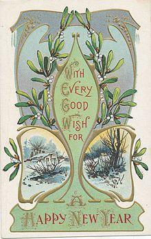 According to an old Christmas custom, a man and a woman who meet under a hanging of mistletoe were obliged to kiss. The custom may be of Scandinavian origin.[22] It was alluded to as common practice in 1808[23] and described in 1820 by American author Washington Irving in his The Sketch Book of Geoffrey Crayon, Gent.: