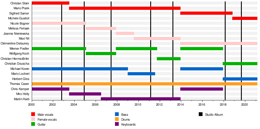 | Past members | Nicole Bogner Melissa Ferlaak Maxi Nil Joanna Nieniewska Werner Fiedler Wolfgang Koch Christian Hermsdörfer Mike Koren Mario Holly Chris Kamper Martin Harb Christian Stani Mario Plank Siegfried Samer |