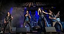 The band's current vocalists Michele Guaitoli and Clémentine Delauney at Rockharz Open Air 2019 | |