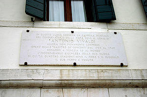 Antonio Lucio Vivaldi was born on 4 March 1678 in Venice,[7] then the capital of the Venetian Republic. He was baptized immediately after his birth at his home by the midwife, which led to a belief that his life was somehow in danger. Though the reasons for the child's immediate baptism are not known for certain, it was done most likely due either to his poor health or to an earthquake that shook the city that day. In the trauma of the earthquake, Vivaldi's mother may have dedicated him to the priesthood.[8] The ceremonies which had been omitted were supplied two months later.[9]