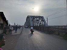 Vivekananda Setu (also called Willingdon Bridge and Bally Bridge) is a bridge over the Hooghly River in West Bengal, India. It links the city of Howrah, at Bally, to North 24 Parganas, at Dakshineswar. Completed on 12 December 1930 & opened on 28 December 1930, it is a multispan steel bridge and was built to provide road and rail links between the Calcutta Port and its hinterland. It is 2,960 feet (900 m) long having 9 Spans in total. The famous Dakshineswar Temple is situated on the banks of the Hooghly River near the Bally Bridge. The bridge is one of 4 bridges & the 2nd Oldest Bridge linking Howrah and Kolkata.The Bridge is about 90 years old and still standing tall. Since 2007, it's been accompanied by a new bridge, Nivedita Setu, 50m downstream.