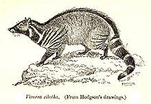 - ^ a b c Pocock, R. I. (1939). "Viverra zibetha Linnaeus. The Large Indian Civet". The Fauna of British India, including Ceylon and Burma. Mammalia. – Volume 1. London: Taylor and Francis. pp. 346−354.