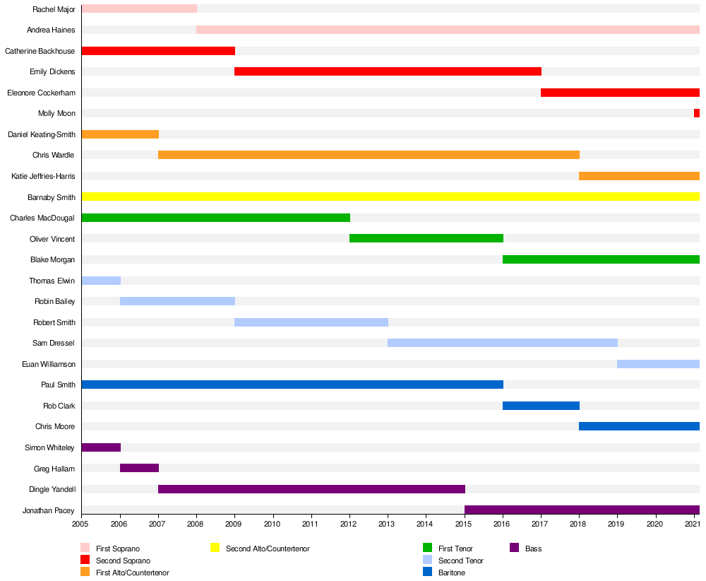 - Barnaby Smith – Second alto/countertenor (2005–present)