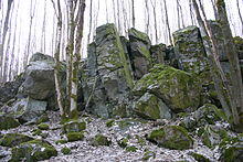 On the northern slopes of the Taufstein are large stone runs of basalt.