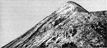 In 1881, French writer Eugenio Dussaussay climbed the volcano, then practically unexplored.[9] First, he needed to ask for permission to climb from the Sacatepéquez governor, who gave him a letter for the Alotenango mayor asking for his assistance with guides to help the explorer and his companion, Tadeo Trabanino.[10] They wanted to climb the central peak, unexplored at the time, but could not find a guide and had to climb to the active cone, which had a recent eruption in 1880.[11]