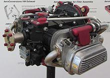 The Volkswagen air-cooled engine is an air-cooled boxer engine with four horizontally opposed cast-iron cylinders, cast aluminum alloy cylinder heads and pistons, magnesium-alloy crankcase, and forged steel crankshaft and connecting rods.