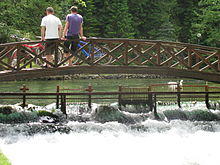 The paths and roads inside the park are ideal for walks and bicycle riding[4] and give the visitors the opportunity to take a closer look at the bubbling streams and waterfalls. Outdoor cafés and restaurants are available offering drinks and food but opening times vary from season to season. Typical animals are ducks and swans among others.[5]