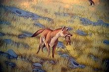 In the Pleistocene, Vulpes had a fairly wide distribution, with eight species found in North America. Of these eight, six are not fossil, and three species still remain in North America (V. velox, V. macrotis, and V. vulpes). The remaining three moved on to sections of Africa over time. V. stenognathus is extinct, but has extant sister taxa including V. chama, V. rueppellii, V. velox, and V. vulpes, which fits with these species all evolving together in North America.[10]
