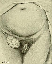 Typically, a lesion presents in the form of a lump or ulcer on the labia majora and may be associated with itching, irritation, local bleeding or discharge, in addition to pain with urination or pain during sexual intercourse.[8] The labia minora, clitoris, perineum and mons are less commonly involved.[9] Due to modesty or embarrassment, people may put off seeing a doctor.[10]