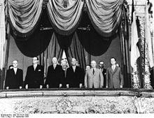 In 1939, following the 1938 Munich Agreement and Hitler's subsequent invasion of Czechoslovakia, Stalin believed that Britain and France would not be reliable allies against German expansion so instead sought to conciliate Nazi Germany.[36] In May 1939 Maxim Litvinov, the People's Commissar for Foreign Affairs, was dismissed; Molotov was appointed to succeed him.[37] Molotov was succeeded in his post as Premier by Stalin.[38]