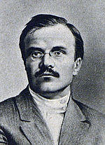 Molotov was born Vyacheslav Mikhailovich Skryabin (Russian: Вячеслав Михайлович Скря́бин) in the village of Kukarka, Yaransk Uyezd, Vyatka Governorate (now Sovetsk in Kirov Oblast), the son of a shop clerk. Contrary to a commonly repeated error, he was not related to the composer Alexander Scriabin.[3] Throughout his teen years, he was described as "shy" and "quiet", always assisting his father with his business. He was educated at a secondary school in Kazan, and joined the Russian Social Democratic Labour Party (RSDLP) in 1906, soon gravitating toward that organisation's radical Bolshevik faction, headed by V. I. Lenin.[4]