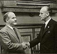 The most important part of the agreement was the secret protocol, which provided for the partition of Poland, Finland, and the Baltic States between Nazi Germany and the Soviet Union and for the Soviet annexation of Bessarabia (then part of Romania, now Moldova).[37] This protocol gave Hitler the green light for his invasion of Poland, which began on 1 September.[39] On 5 March 1940 Lavrentiy Beria gave Molotov, along with Anastas Mikoyan, Kliment Voroshilov and Stalin, a note ordering the execution of 25,700 Polish officers and anti-Soviets, in what has become known as the Katyn massacre.[38]
