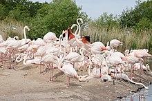 The site consists of 800 hectares (2,000 acres) of reserve,[10] of which part is landscaped and can be visited by the public. At Slimbridge is the largest collection of wildfowl species in the world, and wild birds mingle with these in the enclosures.[10] Some of the captive birds form part of international breeding programmes. The reserve includes a mixture of pastureland, much of which gets flooded in winter, lagoons, reed beds and salt marshes besides the Severn Estuary. Many wildfowl visit the site including greater white-fronted geese, Eurasian spoonbills, pied avocets and even common cranes, the latter being birds that were originally bred here and later released on the Somerset Levels. There are also some rare species of plant on the reserve including the grass-poly (Lythrum hyssopifolia) and the wasp orchid, a variant of the bee orchid (Ophrys apifera).[4]
