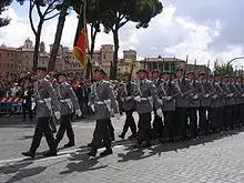 ![]() Wachbataillon members stand in formation at the Defense Ministry in Berlin. | |
