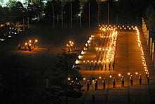 In addition the Wachbataillon executes the Großer Zapfenstreich ("Grand Tattoo") on special occasions (for example on the 50th anniversary of the Bundeswehr in front of the Reichstag in Berlin on the night of October 26, 2005) or takes part in (inter)national events like the ceremonial oath of the Bundeswehr ceremony, parades, state funerals, military tattoos and shows with its drill team which is the best trained special unit of the battalion.