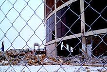 Although the Spectrum formally closed on October 31, 2009, demolition of the structure did not begin for more than a year with internal work commencing on November 8, 2010.[46] Two weeks later a public "wrecking ball ceremony" attended by some of the athletes who made the building famous such as Hockey Hall of Famers Bernie Parent and Bob Clarke of the Flyers and Hall of Famer Julius Erving of the 76ers, was held in the adjacent parking lot "H" on November 23, 2010, to formally begin its external demolition.[47] However, unlike Veterans Stadium, its one-time neighbor, which had been located immediately across Pattison Avenue from the Spectrum before it was imploded on March 21, 2004, the almost half-year process of demolishing the then-44-year-old arena, done without the use of explosives, was completed in May 2011. This was done to protect its other sports facilities from dust. Water was used to prevent dust from spreading.