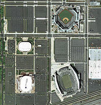 Opened in 1967 as the first of the five modern facilities to be built at the South Philadelphia Sports Complex between 1967 and 2004, by the time it closed in 2009 the Spectrum was the oldest of the four venues still standing of the two indoor arenas and four outdoor stadiums built at the South end of Broad Street since 1926. The complex's total area expanded with the addition of each new facility and now takes up the entire SE quadrant of the grounds occupied in 1926 by Philadelphia's Sesqui-Centennial International Exposition, a massive 184-day World's fair built on 700+ acres of until then largely undeveloped city owned swamp and park land (including League Island Park) adjacent to the U.S. Navy Yard bounded by 10th Street, Packer Ave., 23rd Street, and Terminal Avenue. The Spectrum itself occupied the portion of the Exposition's grounds on the south side of Pattison Avenue between Broad and 11th Streets that in 1926 served as the fair's main trolley terminal operated by the Philadelphia Rapid Transit Company.[43]