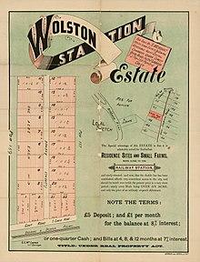 - ^ "SALE OF WOLSTON ESTATE". The Brisbane Courier. LVIII (13, 651). Queensland, Australia. 12 October 1901. p. 4. Archived from the original on 10 October 2020. Retrieved 21 May 2019 – via National Library of Australia.