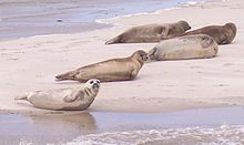 Wadden Sea is an important habitat for both harbour and grey seals. Harbour porpoises and white-beaked dolphins are the sea's only resident cetaceans. They were once extinct in the southern part of the sea but have also re-colonized that area again.[17] Many other cetaceans only visit seasonally, or occasionally.[18][19][20] In early history, North Atlantic right whales and gray whales were present in region, perhaps using the shallow, calm waters for feeding and breeding. It has been theorized that they were hunted to extinction in this region by shore-based whalers in medieval times.[21][22] They are generally considered long-extinct in the region, but in the Netherlands a possible right whale was observed close to beaches on Texel in the West Frisian Islands and off Steenbanken, Schouwen-Duiveland in July 2005.[23] Recent increases in number of North Atlantic humpback whales and minke whales might have resulted in more visits and possible re-colonization by the species to the areas especially around Marsdiep.[24][25] Future recovery of once-extinct local bottlenose dolphins is also expected.[17]