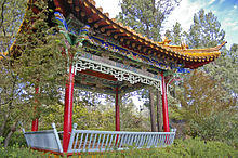 The camellia garden was established as a bicentennial project in 1988, along with several other northernly situated themed garden projects including the Cacti and Succulent Garden, an Elizabethan themed garden funded by the Shakespearian Society of Wagga Wagga and the Tree Chapel, a fully functional outdoor church that is a frequently popular venue for weddings. Located in the camelia garden is a magnificently decorated traditional Chinese pavilion, a bicentennial gift from Kunming, China, one of Wagga Wagga's sister cities.[4]