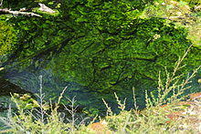 Waimangu is home to a wide range of micro-organisms and plants adapted to the different thermal conditions in the valley, from thermophilic bacteria surviving temperatures of 70 °C (158 °F) and algae growing in acidity levels of pH 3.8[13] to mosses and prostrate kanuka growing in soil temperatures up to 55 °C (131 °F).[14]