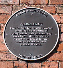In 1847 Barkham Street, a 'London-style' terrace, was commissioned by Bethlem Hospital and built to the design of Sydney Smirke and to specifications similar to other Bethlem terraces in Southwark, London.