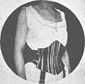 Straight-front short corset of ribbon, named Ribbon Corset, circa 1901.[6]