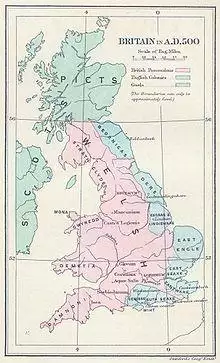 The 400-year period following the collapse of Roman rule is the most difficult to interpret in the history of Wales.[39] After the Roman departure in AD 410, much of the lowlands of Britain to the east and south-east was overrun by various Germanic peoples, commonly known as Anglo-Saxons. Some have theorized that the cultural dominance of the Anglo-Saxons was due to apartheid-like social conditions in which the Britons were at a disadvantage.[46] By AD 500 the land that would become Wales had divided into a number of kingdoms free from Anglo-Saxon rule.[39] The kingdoms of Gwynedd, Powys, Dyfed and Seisyllwg, Morgannwg and Gwent emerged as independent Welsh successor states.[39] Archaeological evidence, in the Low Countries and what was to become England, shows early Anglo-Saxon migration to Great Britain reversed between 500 and 550, which concurs with Frankish chronicles.[47] John Davies notes this as consistent with the British victory at Badon Hill, attributed to Arthur by Nennius.[47]