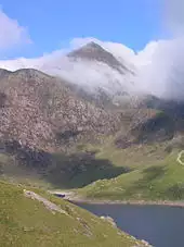 Much of Wales' diverse landscape is mountainous, particularly in the north and central regions. The mountains were shaped during the last ice age, the Devensian glaciation. The highest mountains in Wales are in Snowdonia (Eryri), of which five are over 1,000 m (3,300 ft). The highest of these is Snowdon (Yr Wyddfa), at 1,085 m (3,560 ft).[141][142] The 14 Welsh mountains, or 15 if including Garnedd Uchaf – often discounted because of its low topographic prominence – over 3,000 feet (910 metres) high are known collectively as the Welsh 3000s and are located in a small area in the north-west.[143] The highest outside the 3000s is Aran Fawddwy, at 905 metres (2,969 feet), in the south of Snowdonia.[144] The Brecon Beacons (Bannau Brycheiniog) are in the south (highest point Pen y Fan, at 886 metres (2,907 feet)),[145] and are joined by the Cambrian Mountains in Mid Wales (highest point Pumlumon, at 752 metres (2,467 feet)).[146]