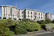 Wales is served by four regional police forces, Dyfed-Powys Police, Gwent Police, North Wales Police and South Wales Police.[131] There are five prisons in Wales; four in the southern half of the country and one in Wrexham. Wales has no women's prisons; female inmates are imprisoned in England.[132][133]