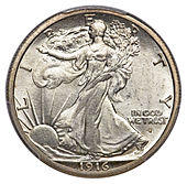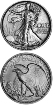 The Walking Liberty half dollar is a silver 50-cent piece or half dollar coin that was issued by the United States Mint from 1916 to 1947; it was designed by Adolph A. Weinman, a well-known sculptor and engraver.
