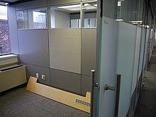 Wall partitions are constructed using beads and tracking that is either hung from the ceiling or fixed into the ground.[6] The panels are inserted into the tracking and fixed. Some wall partition variations specify their fire resistance and acoustic performance rating.