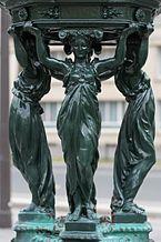 For the large model, Lebourg created four caryatids representing kindness, simplicity, charity and sobriety. Each one is different from her sisters, by the way she bends her knees and where her tunic is tucked into her blouse.