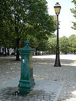 These are simple pushbutton fountains that one can find in squares and public gardens and are marked with the Parisian Seal (although the one installed on the Place des Invalides lacks this seal). They are familiar to mothers who bring their children to play in the many small parks in Paris.