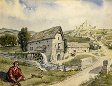 The name Walsall is derived from "Walh halh", meaning "valley of the Welsh", referring to the British who first lived in the area.[4] However, it is believed that a manor was held here by William FitzAnsculf, who held numerous manors in the Midlands.[5] By the first part of the 13th century, Walsall was a small market town, with the weekly market being introduced in 1220 and held on Tuesdays.[6] The mayor of Walsall was created as a political position in the 14th century.