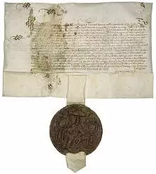 In 1584, Queen Elizabeth granted Raleigh a royal charter authorising him to explore, colonise and rule any "remote, heathen and barbarous lands, countries and territories, not actually possessed of any Christian Prince or inhabited by Christian People", in return for one-fifth of all the gold and silver that might be mined there.[17] This charter specified that Raleigh had seven years in which to establish a settlement, or else lose his right to do so. Raleigh and Elizabeth intended that the venture should provide riches from the New World and a base from which to send privateers on raids against the treasure fleets of Spain. Raleigh himself never visited North America, although he led expeditions in 1595 and 1617 to the Orinoco River basin in South America in search of the golden city of El Dorado. Instead, he sent others in 1585 to found the Roanoke Colony, later known as the "Lost Colony".[18]