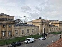 In 2015, a new controversial building[9] for the Blavatnik School of Government of Oxford University on the Radcliffe Observatory Quarter site, designed by Herzog & de Meuron, was opened immediately opposite the Oxford University Press building, dominating the location with its height (taller than Carfax Tower), and resulting in further removal of the high stone wall behind the old Infirmary site.[10] Exeter College is developing the Ruskin site opposite to the south for college accommodation.