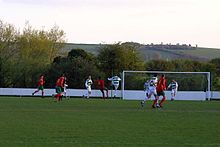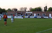Despite finishing fourth at the end of the 1993–94 campaign, the club was demoted to Division one as a result of their ground failing to have floodlights.[9] The club two seasons later finished as runners-up in Division one and subsequently erected floodlights to allow them to be promoted back to the premier Division.[3] The club then remained in the premiership until the end of the 2002–03 season when upon finishing bottom were relegated to Division one east.[10] The 2002–03 season also saw the club enter the FA Cup for the first time, when they met Gosport Borough in the preliminary round, but lost 2–1. The following season the club bounced back up as Champions.[10]