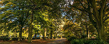 The park was opened in July 1921 as a tribute to the 2,587 Coventrians who died between 1914 and 1918 fighting in the First World War.[2] Coventry Council used money donated by the public to purchase the land from the Lords of Styvechale Manor, the Gregory-Hood family, when it was little more than a large grassed area that once formed Styvechale common.[3] In the north of the park, the landscaped gardens and sports areas were created in the late-1920s and 1930s,[3]