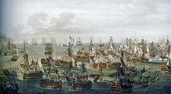 Napoleon's naval plan in 1805 was for the French and Spanish fleets in the Mediterranean and Cádiz to break through the blockade and combine in the West Indies. They would then return, assist the fleet in Brest to emerge from blockade, and in combination clear the English Channel of Royal Navy ships, ensuring a safe passage for the invasion barges. The plan seemed good on paper but as the war wore on, Napoleon's unfamiliarity with naval strategy and ill-advised naval commanders continued to haunt the French.