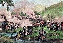 For reasons not entirely clear, Mack ordered Auffenburg on 7 October to take his division of 5,000 infantry and 400 cavalry from Günzburg to Wertingen in preparation for the main Austrian advance out of Ulm.[30] Uncertain of what to do and having little hope for reinforcements, Auffenburg was in a dangerous position. The first French forces to arrive were Murat's cavalry divisions – Klein's 1st Dragoons, Beaumont 3rd Dragoons, and Nansouty's cuirassiers. They began to assault the Austrian positions and were soon joined by Oudinot's grenadiers, who were hoping to outflank the Austrians from the north and west. Auffenburg attempted a retreat to the southwest, but he was not quick enough: the Austrians were decimated, losing nearly their entire force, 1,000 to 2,000 of which were prisoners.[31] The Battle of Wertingen had been an easy French victory.