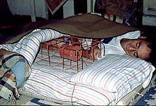 An alternative to the bed warmer was the "bed wagon" (moine in French, monaco in Italian, both meaning "monk"). It consisted of a large wooden frame enclosing a bucket of embers, possibly with an iron tray and an iron roof-plate to protect the bed covers from direct heat.[1][4]