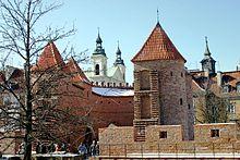 The Warsaw Barbican (Polish: barbakan warszawski) is a barbican (semicircular fortified outpost) in Warsaw, Poland, and one of few remaining relics of the complex network of historic fortifications that once encircled Warsaw. Located between the Old and New Towns, it is a major tourist attraction.
