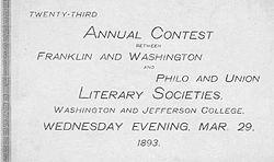 - ^ Coleman, Helen Turnbull Waite (1956). Banners in the Wilderness: The Early Years of Washington and Jefferson College. University of Pittsburgh Press. pp. 154–155. OCLC 2191890.