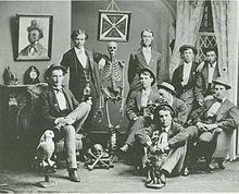 One of the oldest traditions at Washington & Jefferson College was the "Freshman Rules," a system of rules and restrictions on freshmen.[126] Failure by freshmen to follow these rules would subject them to beatings by upperclassmen or other punishments doled out by the "Freshman Court."[126] During the 1870s and 1880s, the students engaged in organized athletic competitions, pitting the freshman versus sophomore classes in the "Olympic Games" that involved elaborate opening ceremonies and the smoking of a "Pipe of Peace."[203] Another form of physical contest between the freshman and sophomore classes were the annual "color rush," where the teams fought over control over strips of fabric, the "pole rush," where the teams battled to raise a flag up a flagpole, and the "cane rush" where the teams fought over control over a ceremonial cane.[126] These contests generally devolved into outright gang violence.[126]